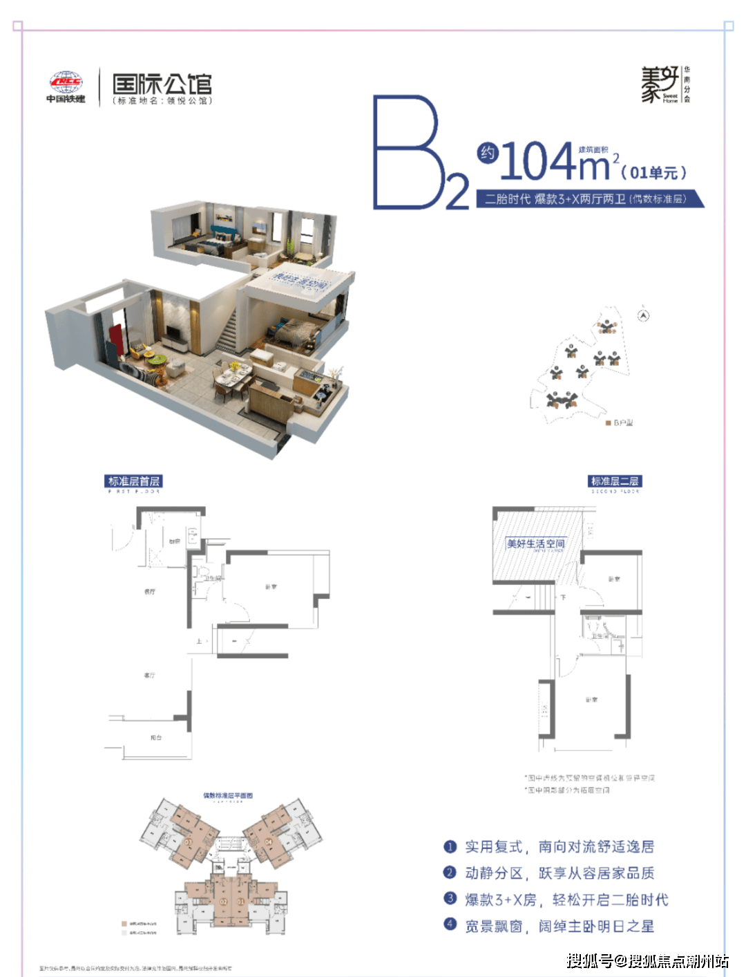 中国铁建国际公馆【户型鉴赏1:二胎时代 爆款3+X房】