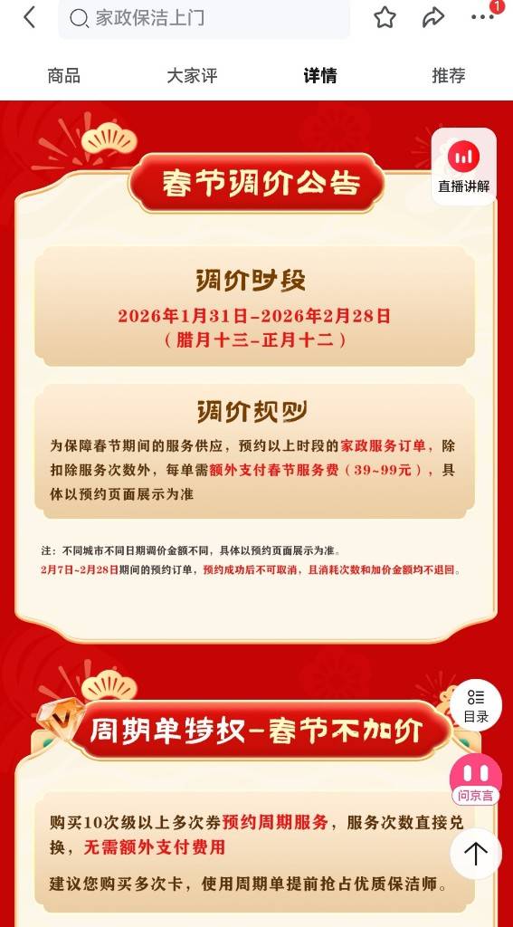 家政市场的火爆,在各平台的预约系统中也可见一斑。记者随机点开几家家政服务的预约链接,发现多家公司已于1月中旬以“保障服务供应、应对保洁师返乡”为由调整价格。