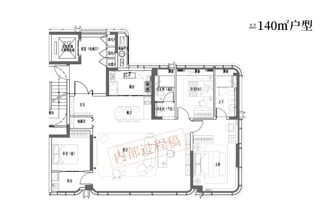 主卧面积约 12㎡,带 270° 飘窗,飘窗台面铺设大理石,业主可以坐在飘窗上看书、喝茶,俯瞰社区景观;次卧面积约 10㎡,朝南设计,可作为儿童房或客房,采光充足;书房面积约 8㎡,朝北设计,可作为办公区或储物间,也可改造成小卧室,灵活满足需求。厨房采用 U 型设计,操作台面长达 2.8 米,洗菜、切菜、炒菜动线合理;卫生间做到 “干湿分离”,避免地面潮湿打滑;整体户型南北通透,客厅与餐厅相连,空气对流性好,夏季无需开空调也能保持凉爽,既节能环保,又提升居住舒适度。