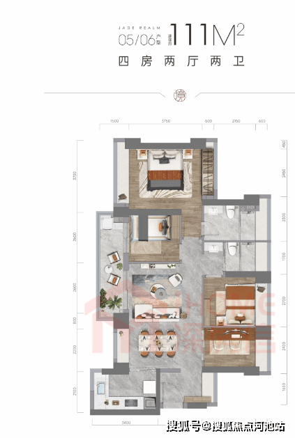111㎡4房2卫:511万-573万 单价4.6-5.2
