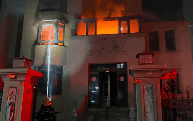 民房深夜燃起大火