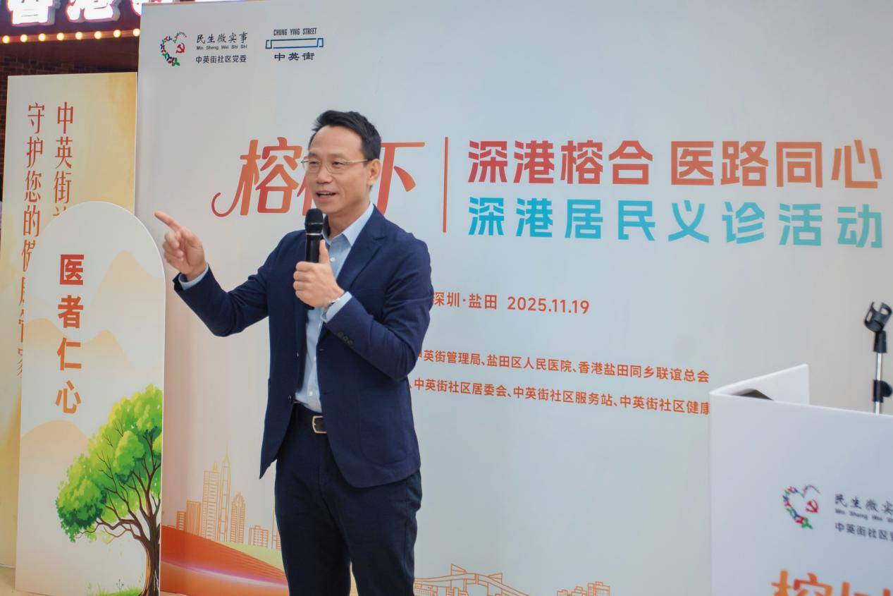 在义诊启动仪式上,盐田区人民医院副院长施培瑶在榕树下向居民介绍:“这棵榕树就生长在我们中英街社区健康服务站的门前,它见证了这条百年老街的变迁。在南方,榕树被视为常青树、健康树,也寄托着深港居民之间深厚的情感。今天我们选择在它身旁开展义诊,正是为了共同守护健康、传递关怀。”他表示,此次活动不仅是医疗服务的延伸,更是深港融合发展的具体实践。“榕合”取自“融合”谐音,寓意深港两地不仅医疗协作、资源互通,更是民心相通、情感相融。医院计划将“榕树下”义诊打造为常态化品牌项目,每年定期举办,持续为两地居民提供服务。