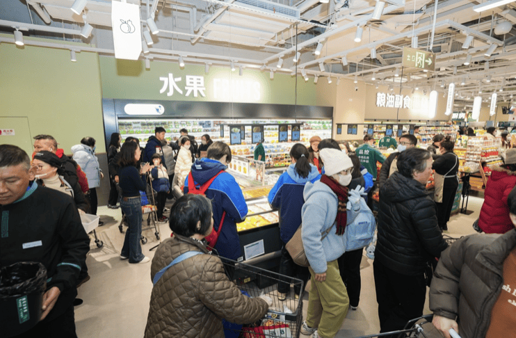 东方网记者程琦2月1日报道:这个周末,京东七鲜超市上海浦东首店在世纪汇广场正式开业。凭借“产地直采”的供应链优势和“又好又便宜”的差异化定位,新店开业首日即吸引大量市民排队抢购。从1699元的飞天茅台、49.9元的巴掌大草莓,到“24小时菜”和“7日鲜蛋”,这家新超市正以其独特的“质价比”和“新鲜度”,为上海火热的春节消费市场再添一把火。
