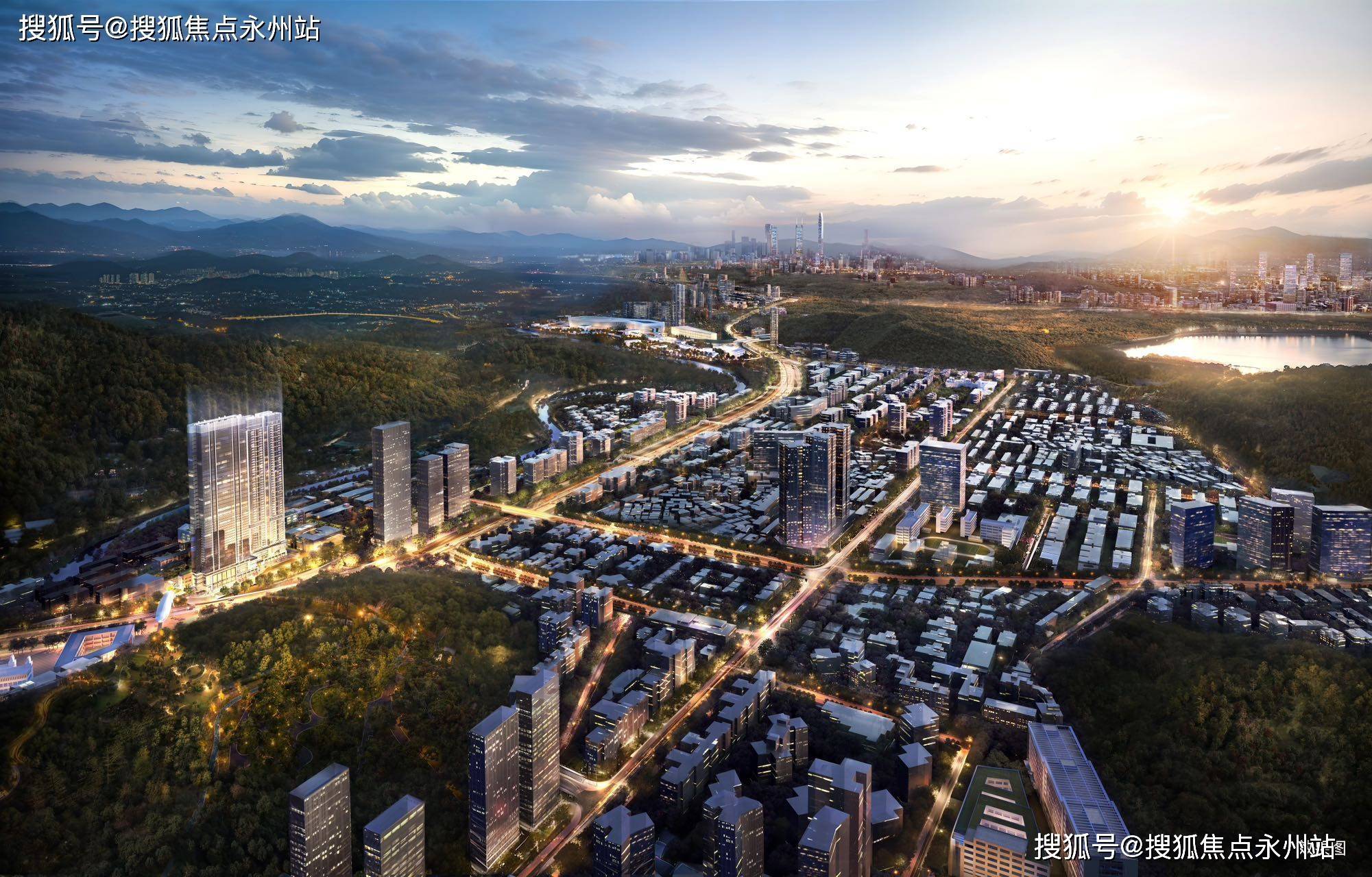 项目选址梧桐山下,比邻深圳河,隔空对望香港红花岭,三面环山得天独厚山景资源,南北双向无遮拦视野,户户观山景。