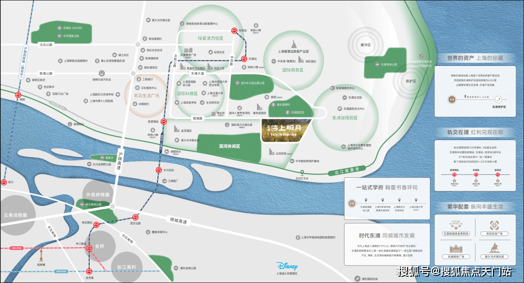 教育方面,首批涉外示范性幼儿园:上海思南路幼儿园;上海市教育水平第一梯队、上海市教委直接领导重点中学:上海实验学校附属东滩学校、上海外国语大学分校(贤达经济人文学院)规划中分三期建设的上海交通大学也纷纷汇聚于此!