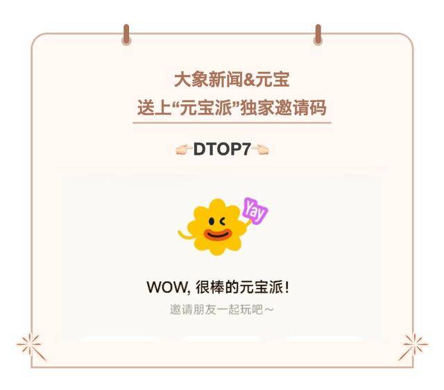 大象新闻联合腾讯为大家申请了限量的“元宝派”邀请码!
