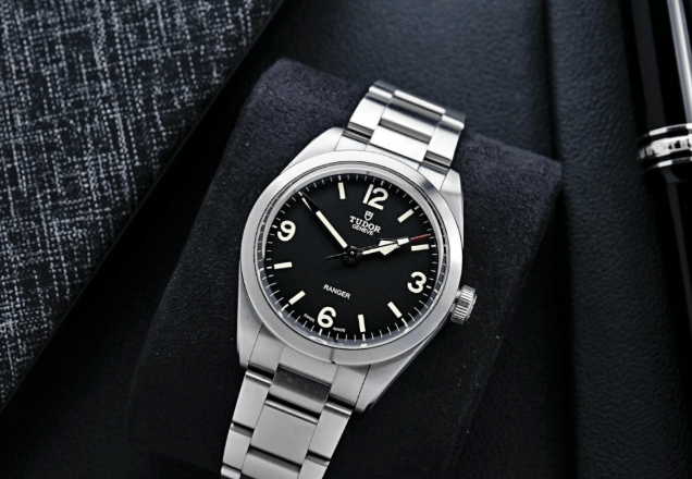 帝舵近年来口碑稳升,部分款式已具备与欧米茄分庭抗礼的实力。游侠系列设计融合复古 Ranger II 与劳力士探险家型的精髓,无日历设计保持盘面整洁,搭载获天文台认证的自产机芯,具备70小时动储。它或许没有华丽外观,却是一块能踏实佩戴十几二十年的可靠通勤表,堪称“性价比堡垒”。