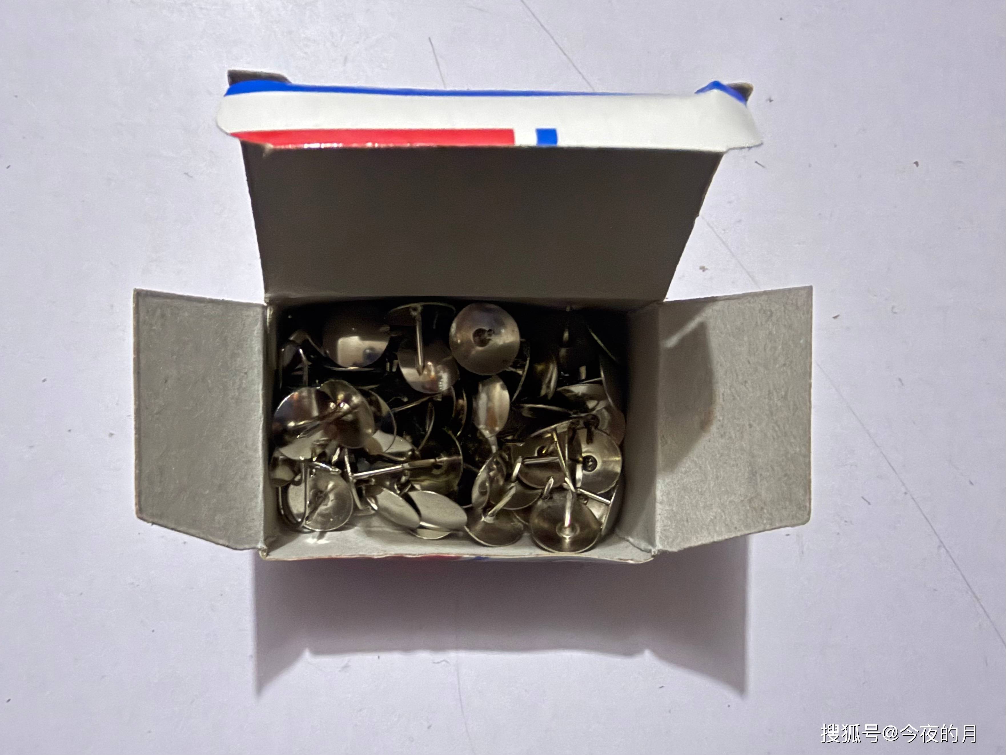 前段时间,有个顾客进店买图钉,我脱口而出说没有。突然我想起有,踩着凳子,从货架上拿出一个大盒子,打开里面有图钉,给他拿了一盒。他问多钱,我说一块钱。