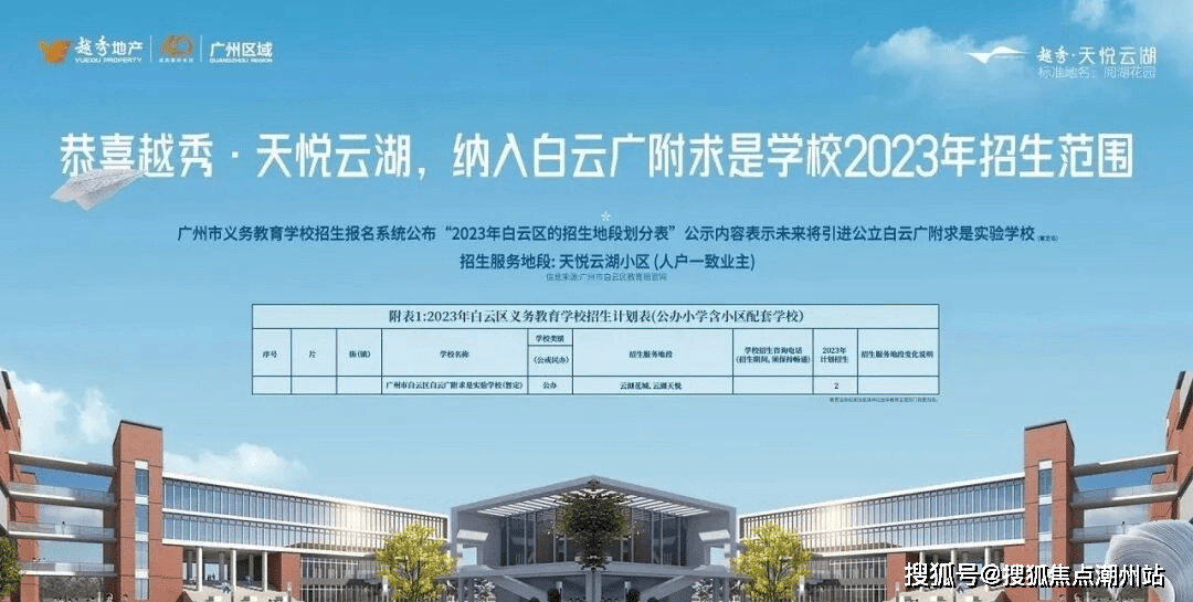 教育配套广州金广附中考6连冠,9年一贯制中小学直升。越秀天悦云湖小区对口的公办学校是白云湖白云广附求是中小学(金广附),属于公办性质9年一贯制中小学直升,位于小区东北方向约1公里(位于品实云湖花城正门),小学旁边就是公办石门实验幼儿园。 不过该中小学及幼儿园都是在对面云湖花城小区,所以越秀天悦云湖的业主上下学接送会相对远一些。白云广附云湖学校师资亦是势力雄厚,近年来,白云广附中考成绩一直名列广州前茅,以白云广附核心学校金广附为例——继广州中考成绩五连冠后,2023年又拿下了广州中考平均分741.64分,最高分770的好成绩。2023年5月底,广州市招考办公布2023届广州中考自主招生初审名单,入围人数为全市之首。而2024年,金广附继续大放异彩,表现稳重有进。