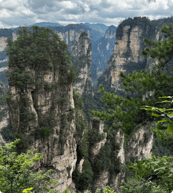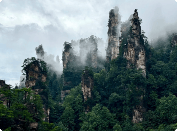 第2天:森林公园→黄石寨→袁家界→杨家界。早上8点小纤来民宿接我们,避开人流高峰,不用排队入园。坐索道上黄石寨,“不上黄石寨,枉到张家界”名不虚传,山顶栈道平缓,三千奇峰配清晨薄雾,朦朦胧胧如仙境,随手拍都是无滤镜大片。中午小纤帮找本地餐馆,避开高价网红店,人均30块两菜一汤,家常味管饱。下午去袁家界(《阿凡达》悬浮山取景地),乾坤柱笔直挺拔,大自然鬼斧神工令人震撼;之后徒步杨家界乌龙寨,峰墙奇观磅礴有特色,游客少不挤人,傍晚坐环保车下山休息。
