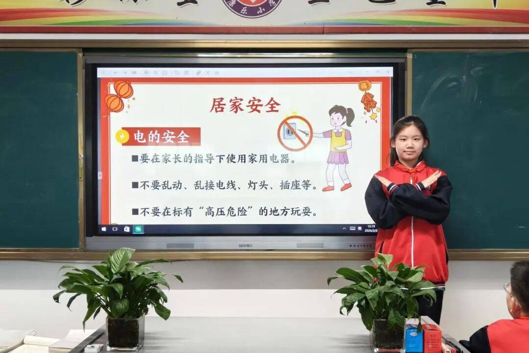 低年级学生好奇心强、认知经验有限,班会以“趣味化、场景化”为核心,让安全知识“活”起来。班主任通过安全儿歌传唱、卡通动画放映、情景模拟小游戏等形式,聚焦居家安全与出行基础防护。“插座开关不乱碰,阳台飘窗不打闹”“红灯停、绿灯行,马路不做小顽童”,朗朗上口的儿歌帮助学生快速记忆安全要点;“不给陌生人开门”“紧跟家长防走失”的情景模拟,让孩子们在角色扮演中掌握自我保护技巧。同时,老师重点强调了冬季取暖安全,提醒学生远离取暖设备,谨防烫伤与火灾风险,将安全习惯根植于日常认知中。