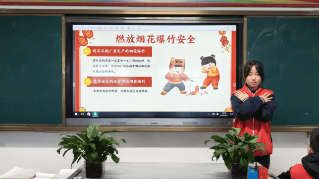 中年级学生自主活动增多,班会聚焦“实用性、互动性”,拓宽安全知识覆盖面。班主任结合真实案例,通过知识问答、分组讨论等形式,深入讲解交通安全、食品安全与消防安全常识。“未满12周岁不骑自行车上路”“乘坐电动车要戴安全头盔”“不买‘三无’食品、不暴饮暴食”,一个个具体要求通过问答竞赛强化记忆;针对冬季火灾高发特点,老师演示了灭火器简易使用方法,讲解了“小火及时灭、大火速逃生”的应急原则,引导学生牢记119报警电话与家庭住址信息。此外,班会特别加入烟花爆竹安全提示,要求学生严格遵守忻州市禁放规定,不擅自燃放烟花爆竹,远离危险区域。
