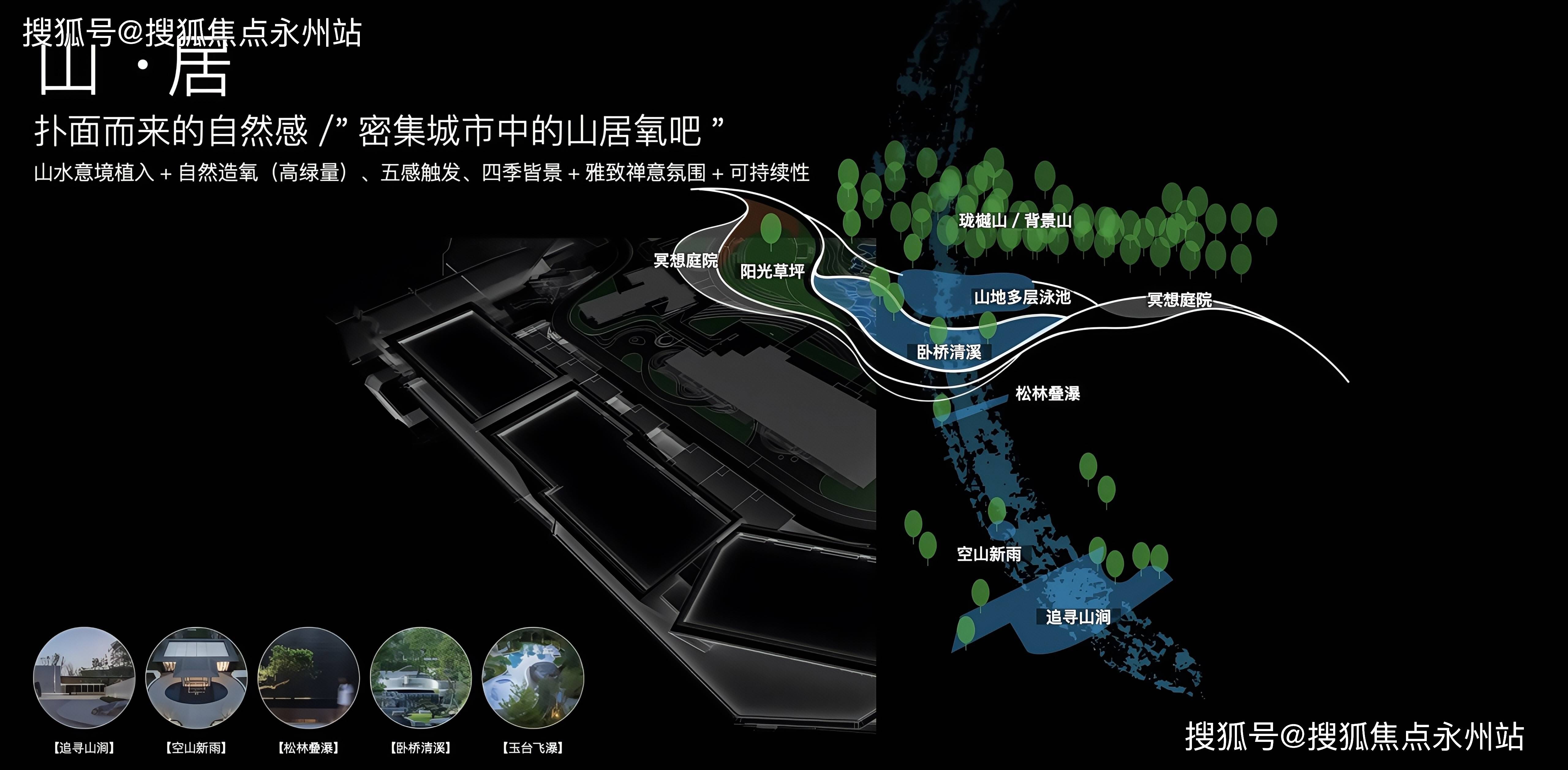 项目特特邀世界豪宅专家CCD郑中设计执笔,秉持“引龙下山 引水入园”的理念,借周边自然景观,通过园林景观和层叠水系,造就与自然平等相处的“流水森林”,呈现山居生活的悠然从容。