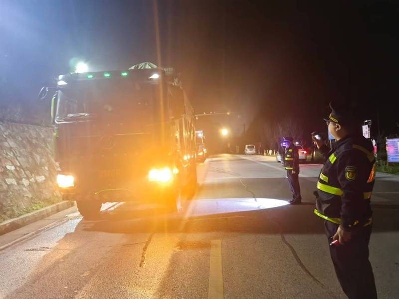 针对违法行为“昼伏夜出”特点,大队联合交警部门、地方交通运输执法部门,建立“预警、核查、卸载处置”闭环执法模式。执法人员通过大数据分析锁定夜间通行规律,明确G320线每日23:00至凌晨3:00为重型货运车辆通行高峰,且部分车辆存在利用小汽车“哨兵”侦查、逃避检测的“躲猫猫”现象。据此,大队在检测处配齐便携式称重设备、执法记录仪等装备,对过往货运车辆逐一核查,精准打击夜间运输砂石、建材的超限车辆。其中,10月31日凌晨开展的夜间流动治超专项行动,共出动执法车辆3辆、执法人员8人,检查货运车辆23台,查获涉嫌违法超限运输车辆6台,现场监督驾驶员卸载整改,依法启动后续行政处罚程序。