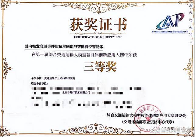 速通公司所属易路行公司凭借“面向突发交通事件的精准感知与智能管控智能体”项目,荣获三等奖。该项目聚焦高速公路突发交通事件告警冗余、应急处置滞后等行业痛点,构建以交通多模态推理大模型(TMLLM-R)为核心的“感知—认知—决策—行动”智能闭环体系。通过融合多源数据实现全要素精准感知,依托思维链推理完成事件因果深度认知,最终联动路侧设施与多方力量开展协同处置,将应急响应时效从小时级压缩至分钟级,大幅提升高速公路主动安全管理水平与应急处置效能。