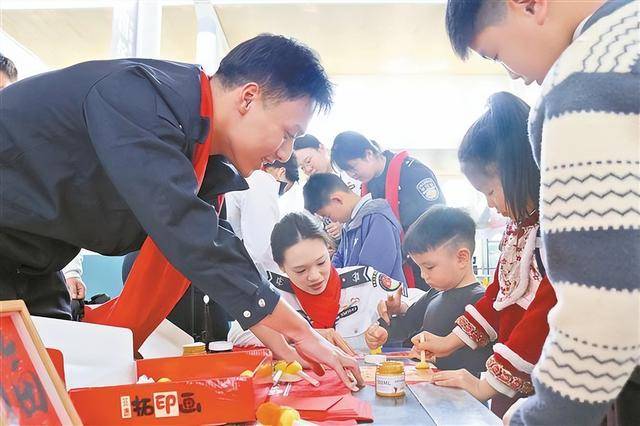 厦门高崎国际机场T3候机楼内,特设的拓印体验区吸引众多旅客驻足。(厦门日报记者 谭心怡 摄)