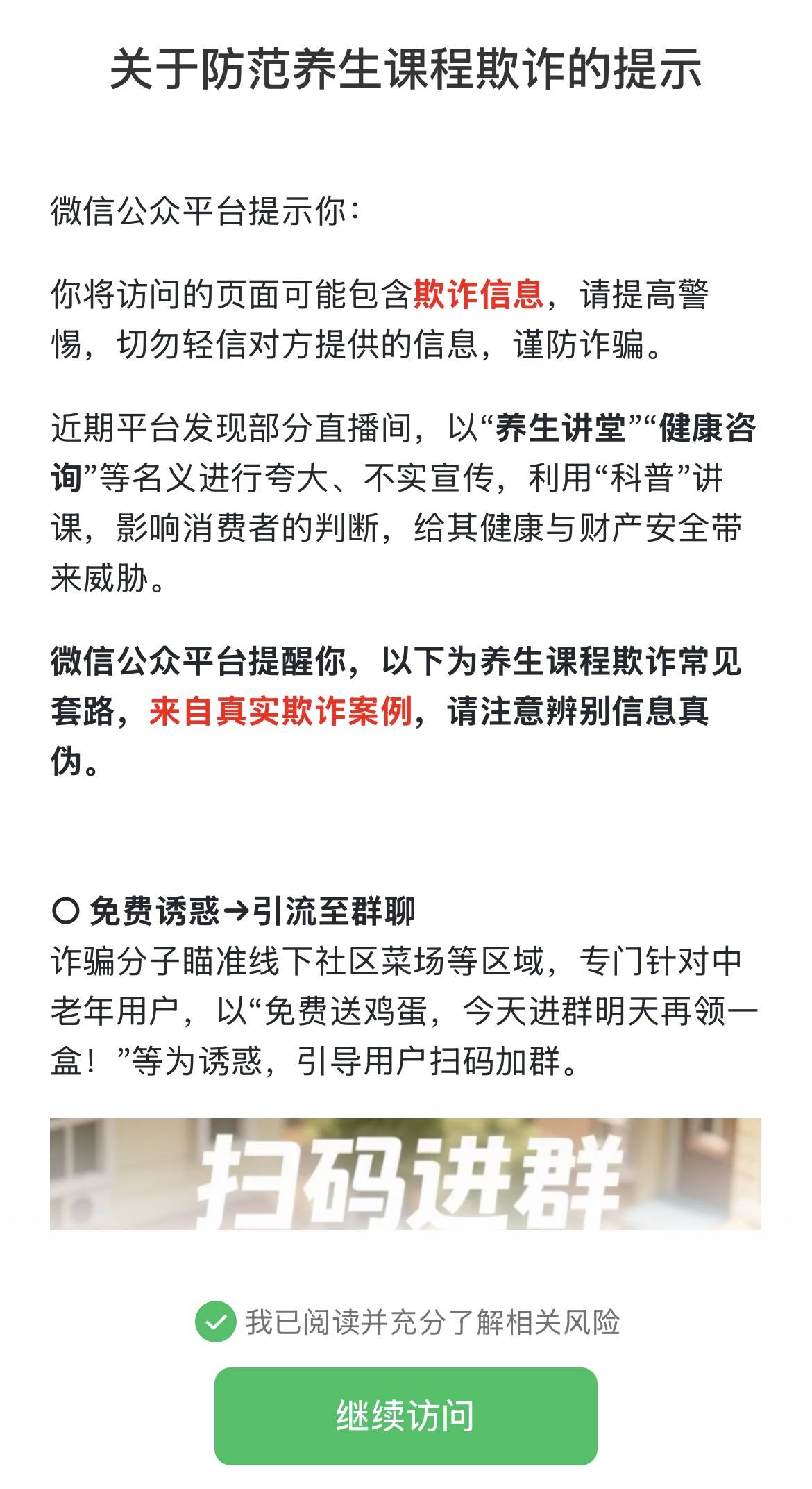 若选择继续访问,系统将再次弹出“关于防范养生课程欺诈的提示”的相关文章,用户只有浏览并勾选“已阅读并充分了解相关风险”后才能打开小程序。目前,千问工具箱的核心功能,包括实时记录、文档阅读、网页阅读等仍可正常使用。