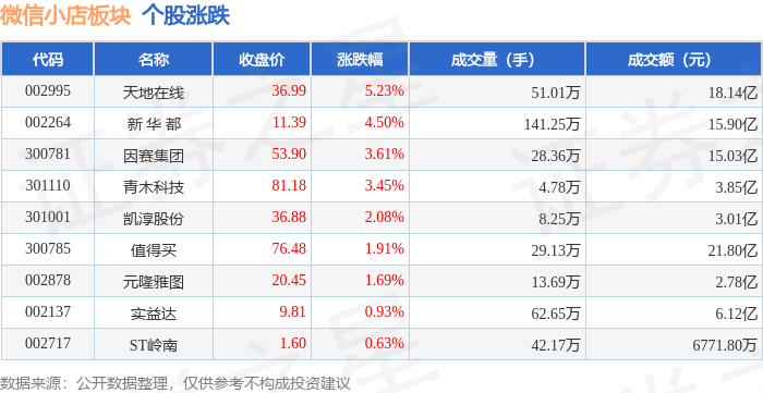 证券之星消息,2月3日微信小店板块较上一交易日上涨2.86%,天地在线领涨。当日上证指数报收于4067.74,上涨1.29%。深证成指报收于14127.1,上涨2.19%。微信小店板块个股涨跌见下表:
