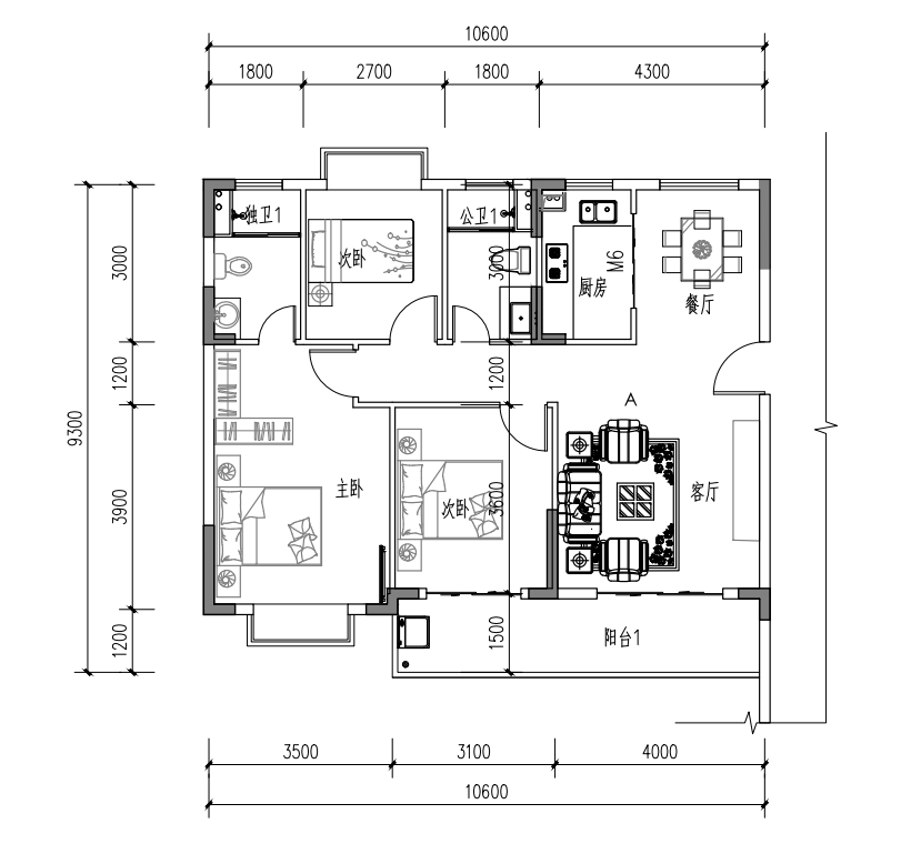 ◎舒适布局:客餐厨等动区,与卧室等静区分离,避免互相干扰