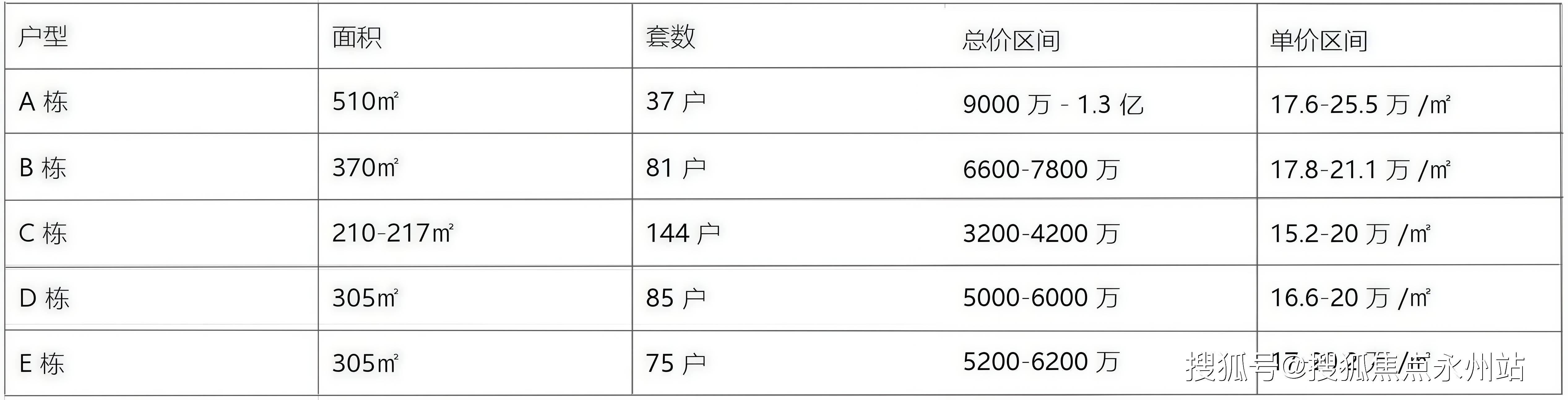 总价范围:210㎡户型3000-3600万;302-307㎡户型5100-5500万;370㎡户型6300-6700万;510㎡户型8300万起,顶复产品总价破亿。