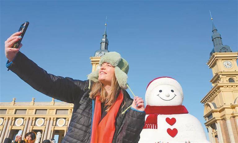 外籍游客打卡哈尔滨。资料片