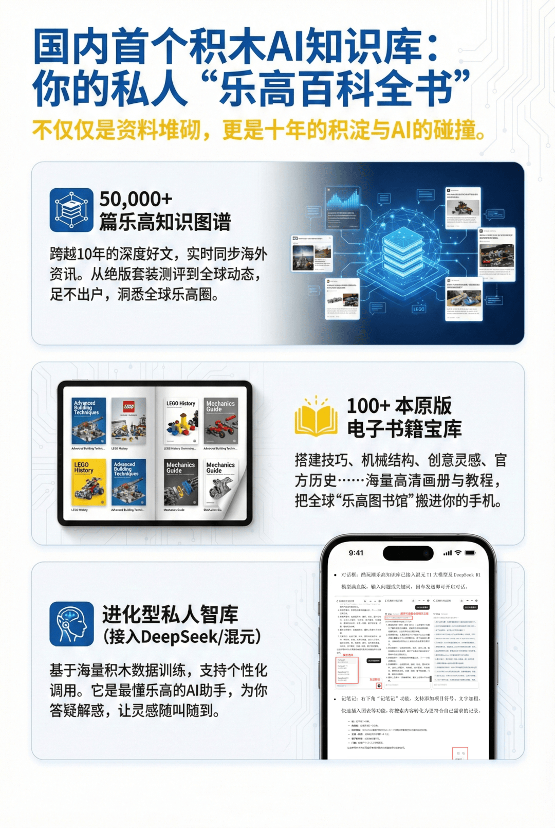 特别的是,我们还在Plus会员特权中,放出了之前从未公布过的,我们仅在编辑部内部使用的自认全网最强的“酷玩潮乐高AI知识库”。