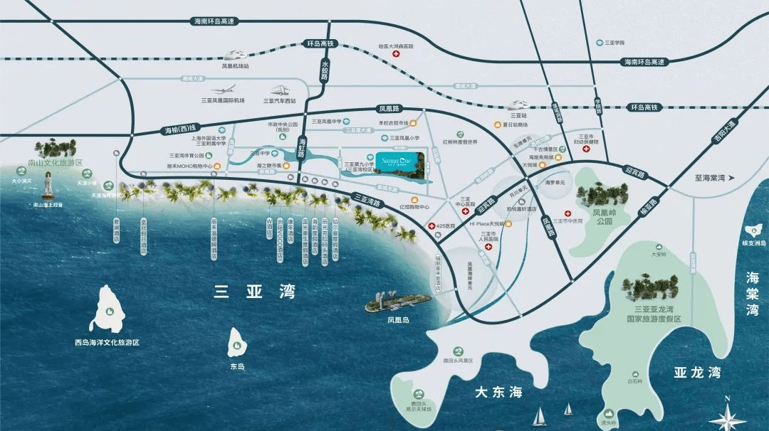 约7公里内,享三亚主城优质医疗配套,三亚哈尔滨医科大学鸿森医院、三亚中心医院、解放军425医院等三甲医院。