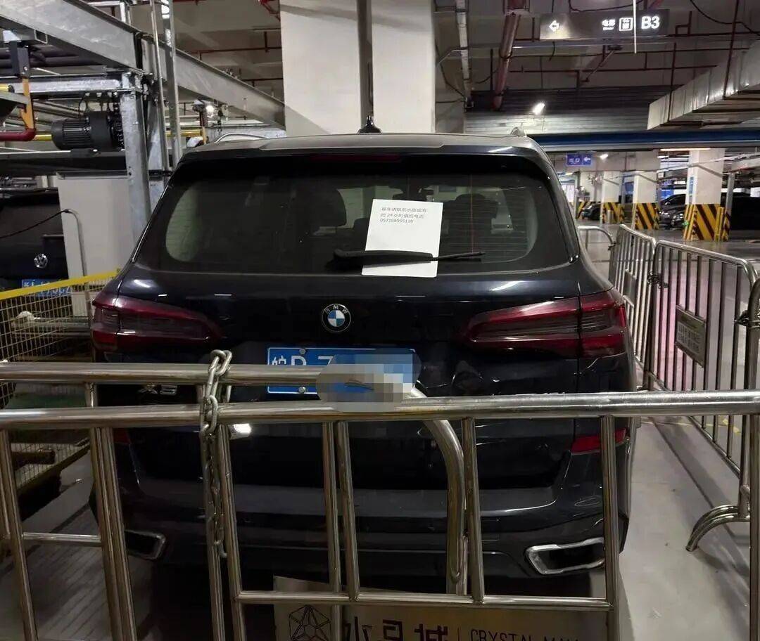 2月2日,有网友在社交平台发帖称,一辆安徽牌照宝马越野车在杭州一处商场的地下停车场被围栏“圈”了起来。