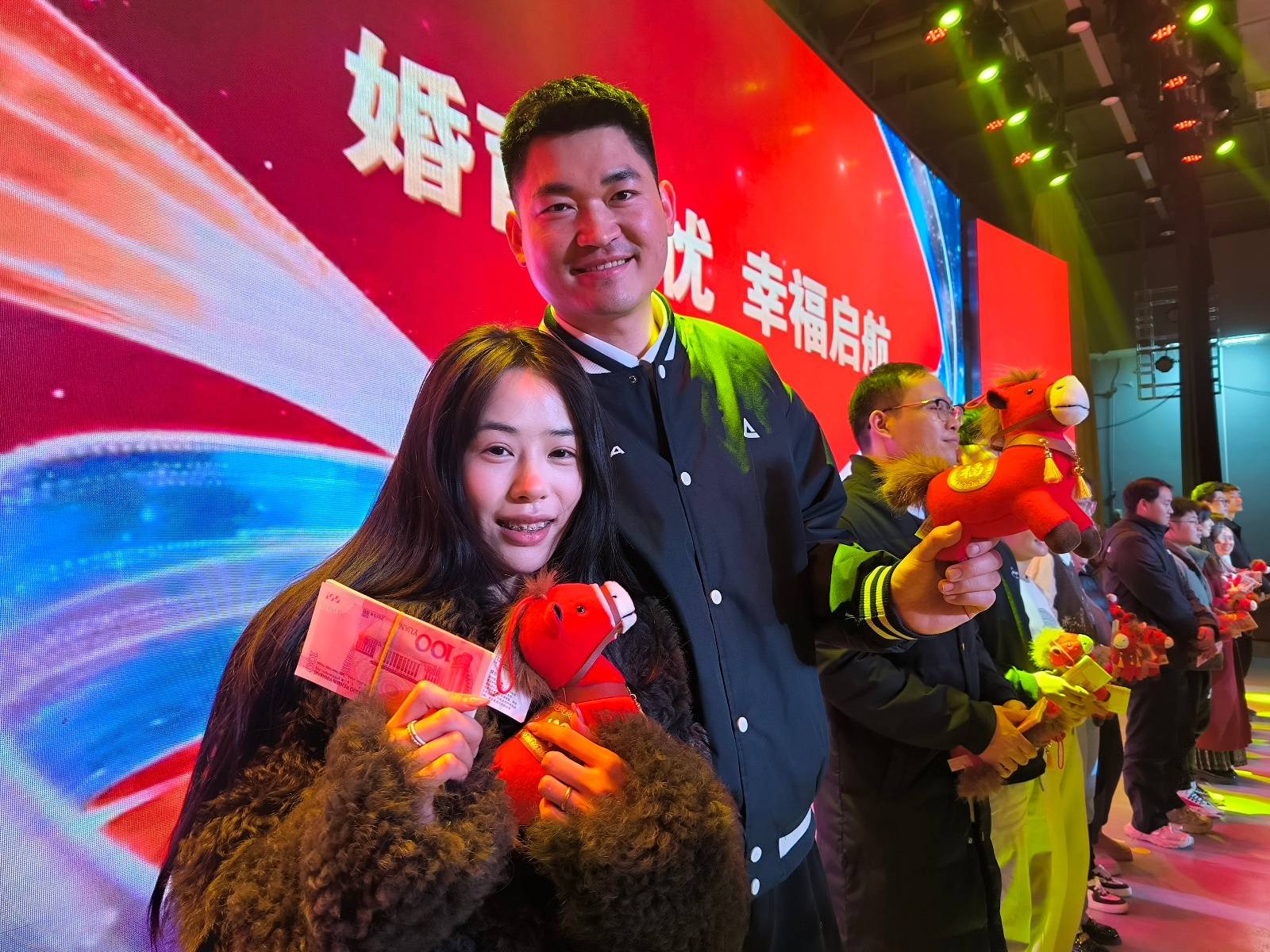 现场,还有像郭思琪夫妇这样的双职工家庭成为焦点,两人喜提2万元现金奖励。“我们非常鼓励员工之间谈恋爱。”赵莹透露,“集团的双职工夫妻已经有30对左右,他们的奖励一律按双份发放。”