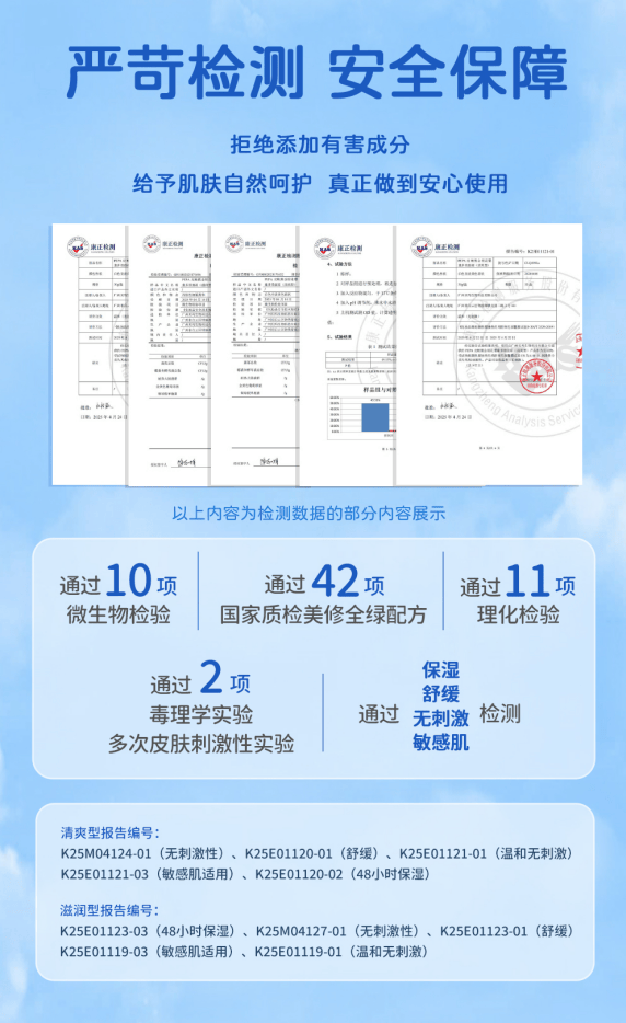 摒弃香精、酒精、色素、矿物油等易敏成分,植萃本方更温和、有效护理,通过多项婴童皮肤安全测试,适配新生儿及敏感肌宝宝使用。