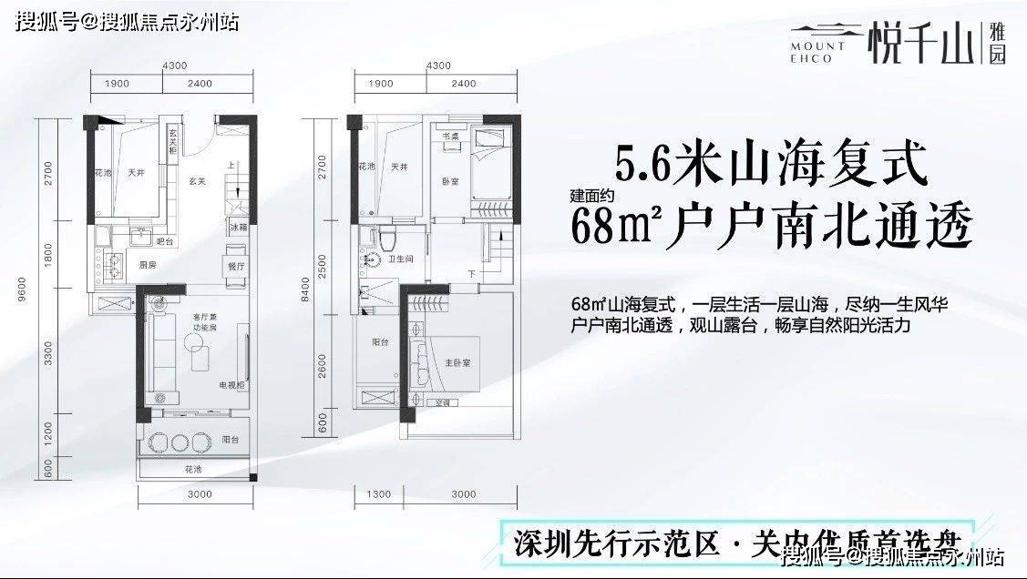 5.6米层高的复式住宅产品,面积段为63-91㎡,使用率高达110%,毛坯交付