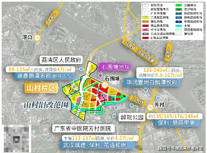 地块北侧规划有030地块小学,未来有望就近入学。周边现有林凤娥小学、荔湾区同心学校等。更值得关注的是,相邻的山村旧改项目规划配建2所新学校,教育资源将持续补强。初中方面,新隆沙片区在建24班公办初中,高中则可参与全区统筹,包括广东实验中学等名校。