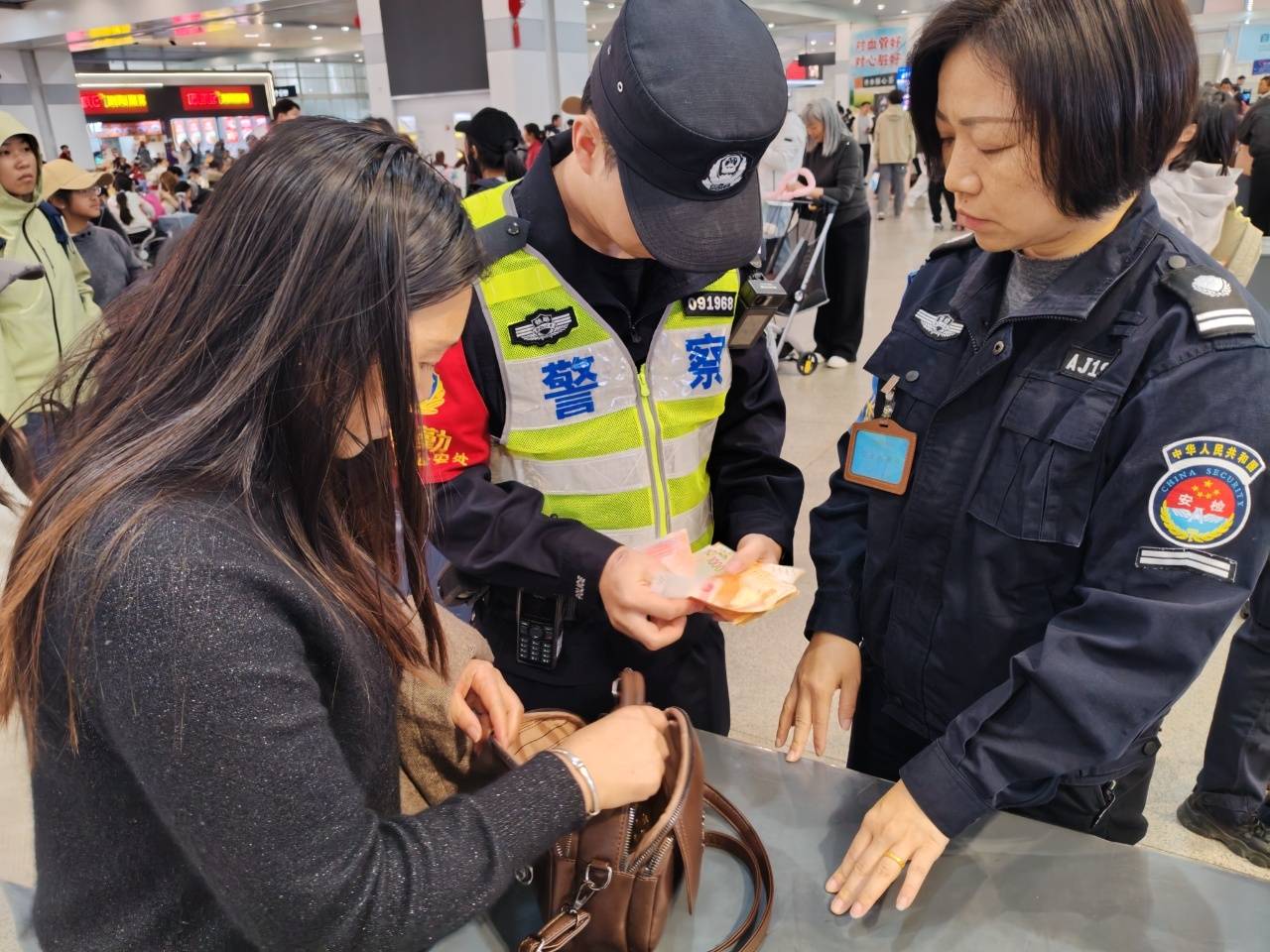近日,一旅客在珠海站进站乘车时不慎遗失一个装有5万现金的挎包。广州铁路公安处珠海站派出所接警后,迅速行动,仅用时6分钟便成功帮助该旅客找回了遗失的挎包。