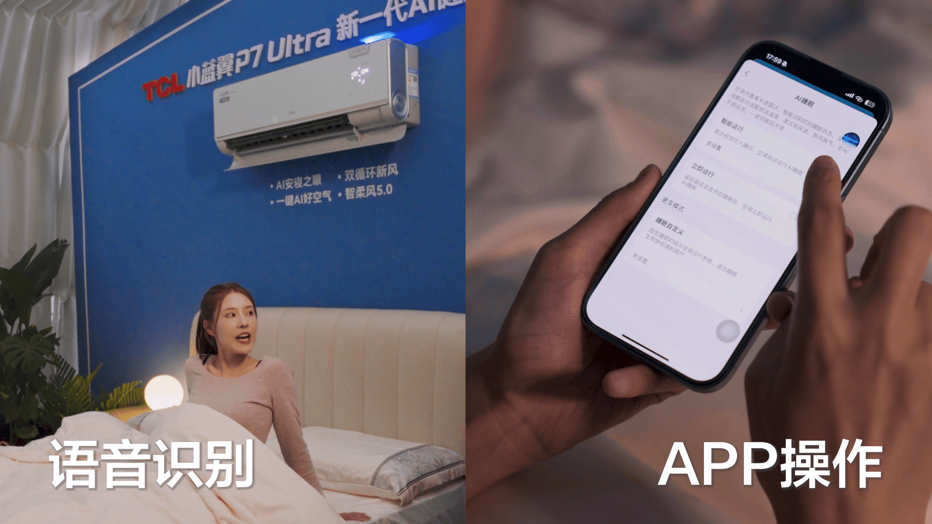 在“深睡大作战”中,马艳发出睡眠指令后,空调随即进入AI睡眠模式,依托安寝之眼睡眠科技,通过毫米波雷达感知睡眠状态,智能调节温度和风速,根据人体睡眠不同阶段体温变化规律,智能检测用户睡眠体动情况,通过AI遗传算法,学习用户睡眠习惯,定制专属睡眠温度曲线,减少夜间温差与风感干扰。同时,还能联动静音、新风、柔风和灯光调节,打造“零存在感”睡眠环境,保障每一位用户的好睡眠。