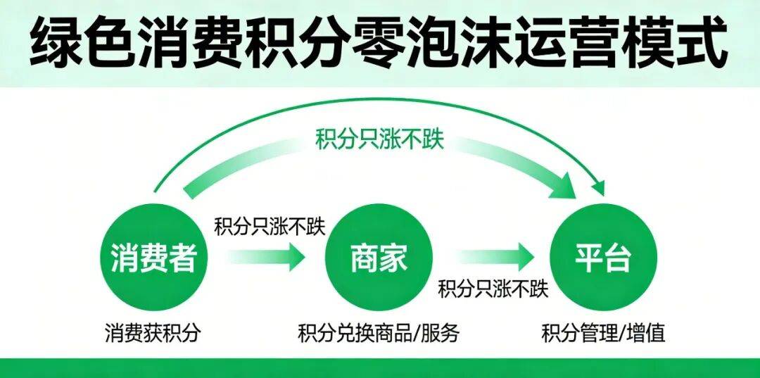 说白了,这套模式就是把绿色消费积分当成一种可流通的价值载体,让它随着平台发展逐步提升价值。通过合理的机制设计,让积分价值稳稳上涨,真正帮商家解决引流难、留客难的问题,让平台、商家和消费者三方都得实惠。