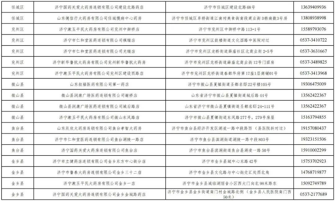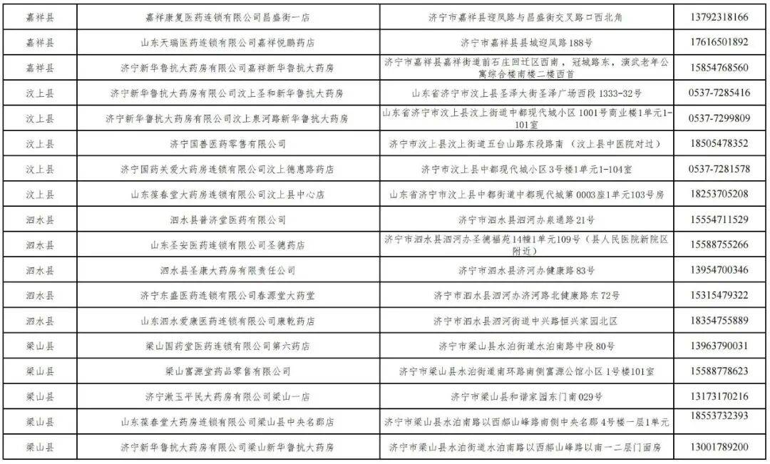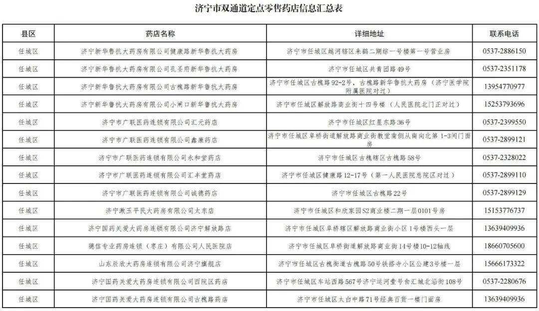 建议收藏!济宁市双通道定点零售药店信息汇总表
