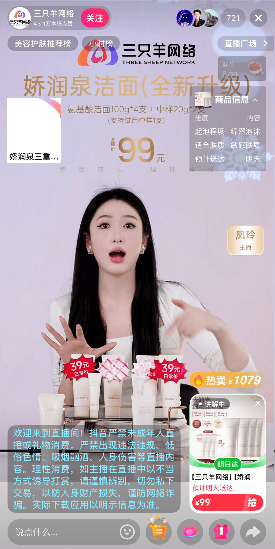 据南方都市报此前报道,1月12日,拥有超过900万粉丝的三只羊网络官方抖音号正式复播。1月13日,该账号继续开播。蝉妈妈数据显示,1月12日,三只羊网络的这场直播持续了4个小时,销售额为10万-25万元,销量为2500-5000件。