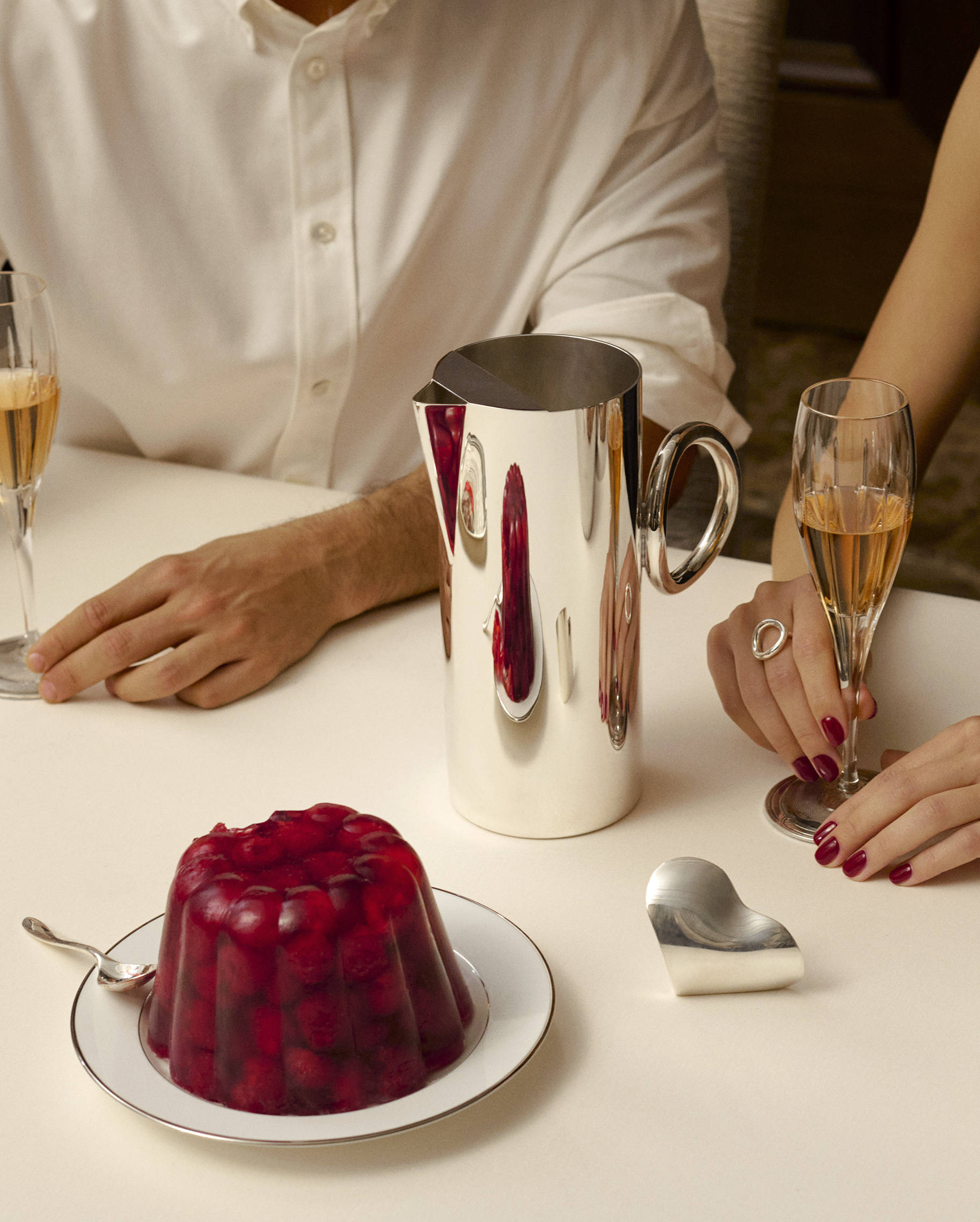 目光流转席间,最先触动心弦的是那抹灵动光泽。Vertigo 舞动之环系列,在著名设计师 Andrée Putman 的巧思之下,为传统银器注入灵动生命力。微微倾斜的圆环,看似随性却暗藏张力,恰似爱人温润环抱的臂弯,又若指间缠绕不散的誓言。不对称的别致美感,让爱意轻盈萦绕在每一寸空间。