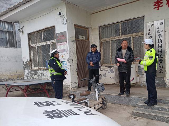 为筑牢道路交通安全防线,防范交通事故的发生,2026年2月3日上午,浚县公安局交通管理大队组织民警,走进新107国道沿线白寺镇李桥、张七营等村庄,开展针对性交通安全宣传教育工作,全力保障新国道通车后群众出行安全。