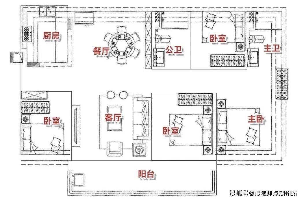84㎡做四房两卫,设计很牛,基本是73㎡plus版,不同之处在于,玄关处做了书房。