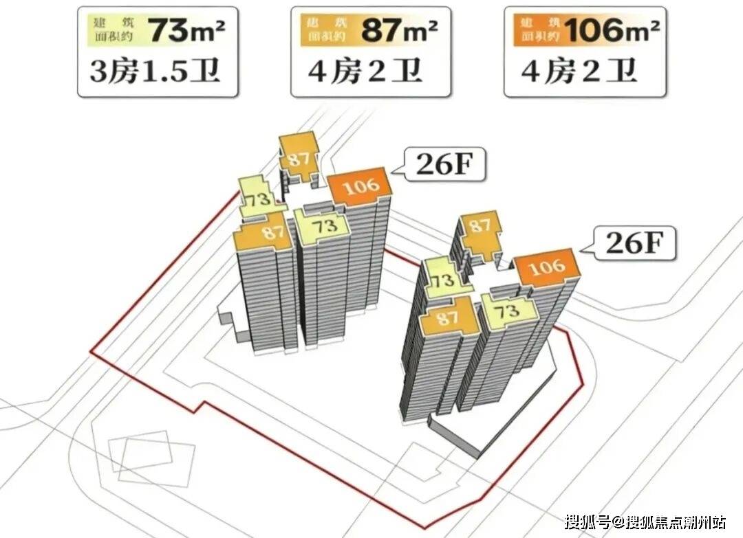 户型:约73平三房、87平四房、106平四房三个户型
