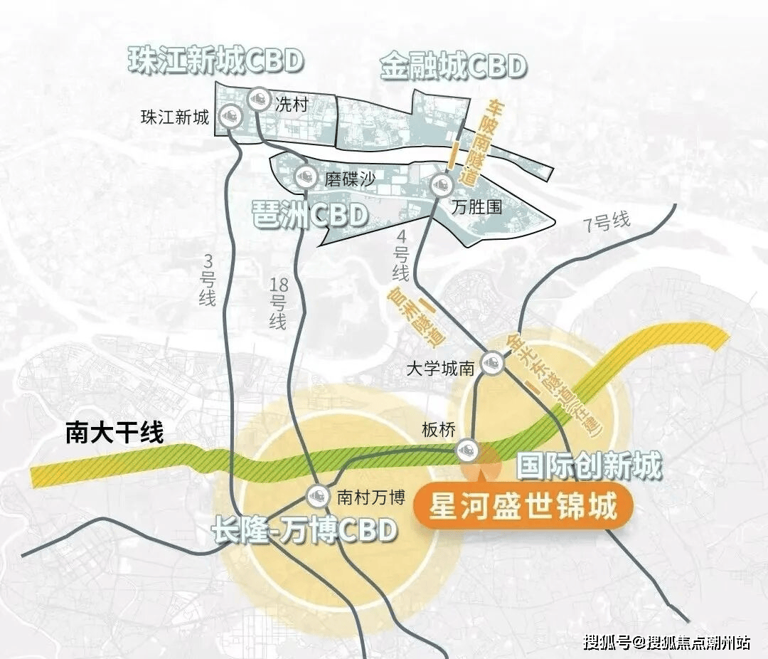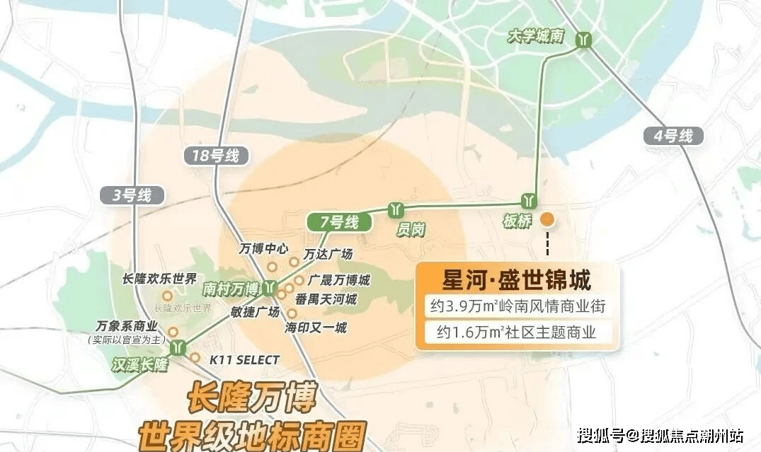 广州星河盛世锦城坐落于万博·余荫山房北侧·板桥地铁站,地理位置优越。地处南大干线经济带上的番禺黄金财智走廊,不仅是连接珠三角东西岸的重要发展走廊,更串联了番禺多个关键经济台,如广州南站、长隆万博、国际创新城以及汽车城板块。出门即可上南大干线,无缝连接万博和广州南站,更有多条快速通道直达琶洲、金融城、珠江新城等地。