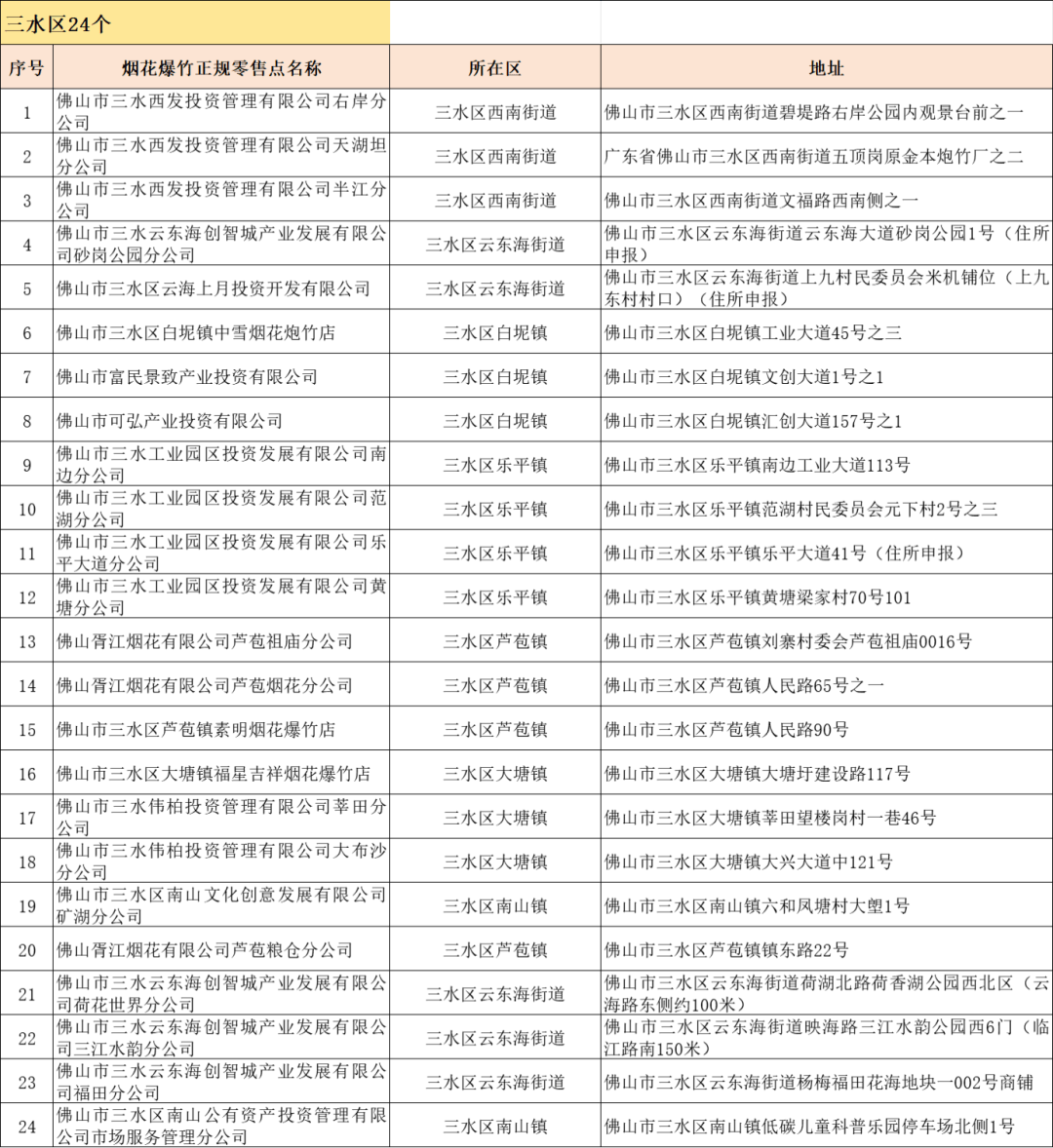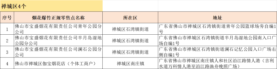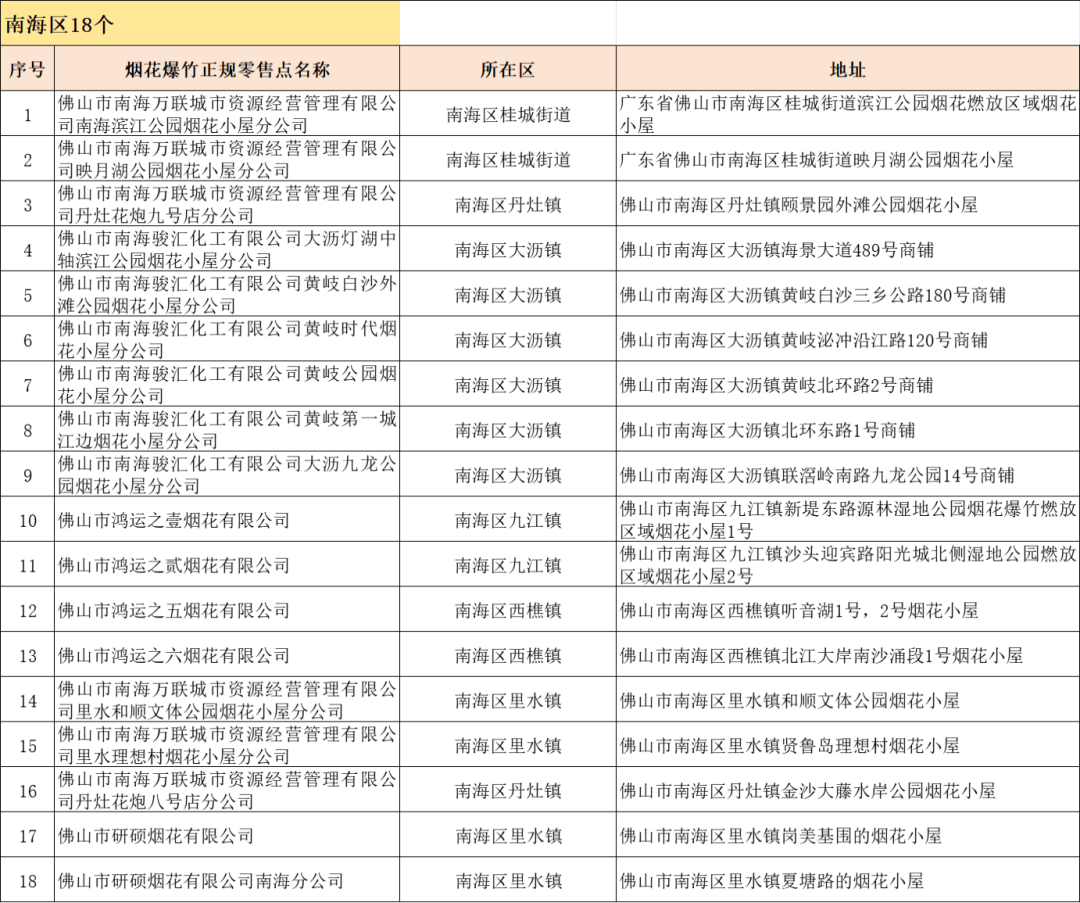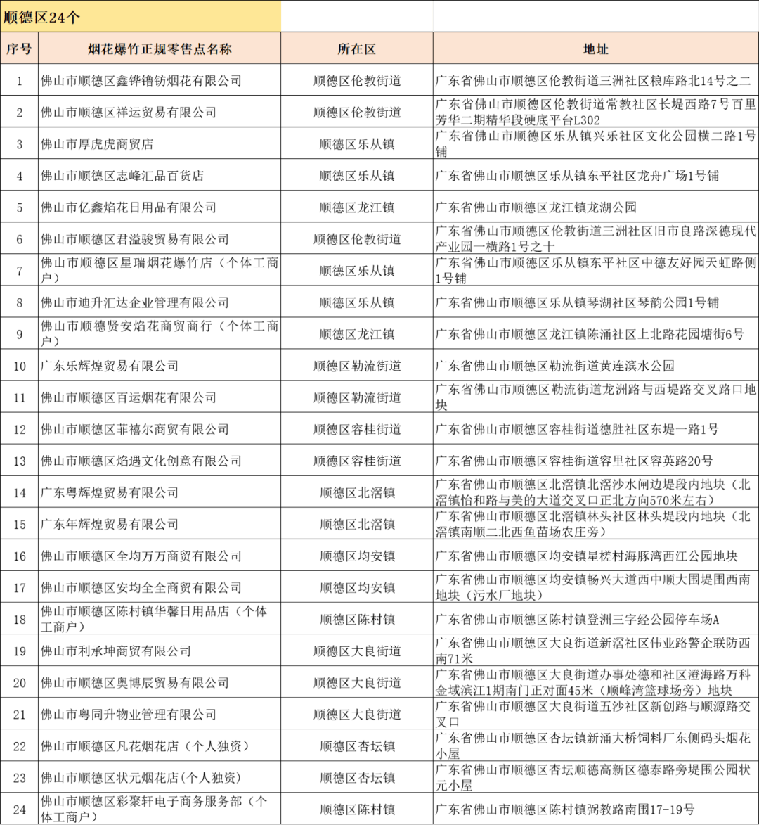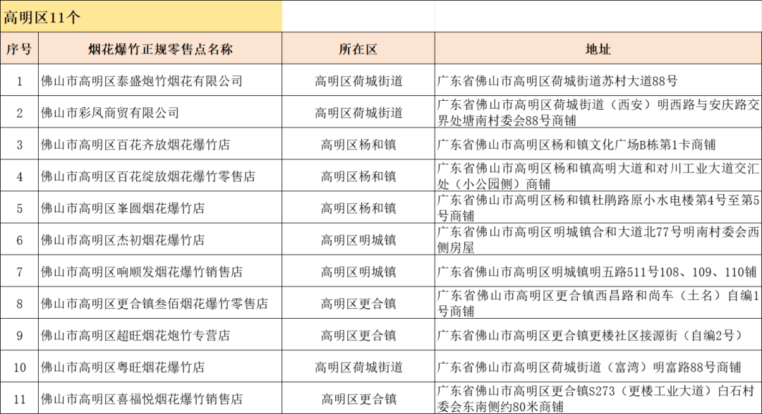 佛山市烟花爆竹正规零售点更新啦