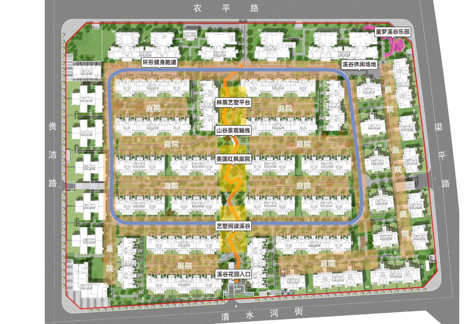 ?一轴: 约240m艺墅山谷景观轴