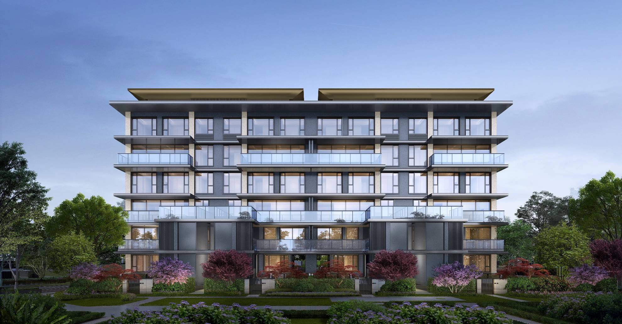 ⛲三重景:约240㎡景观艺墅水景、约100㎡艺墅阅读溪谷、约150㎡美国红枫庭落