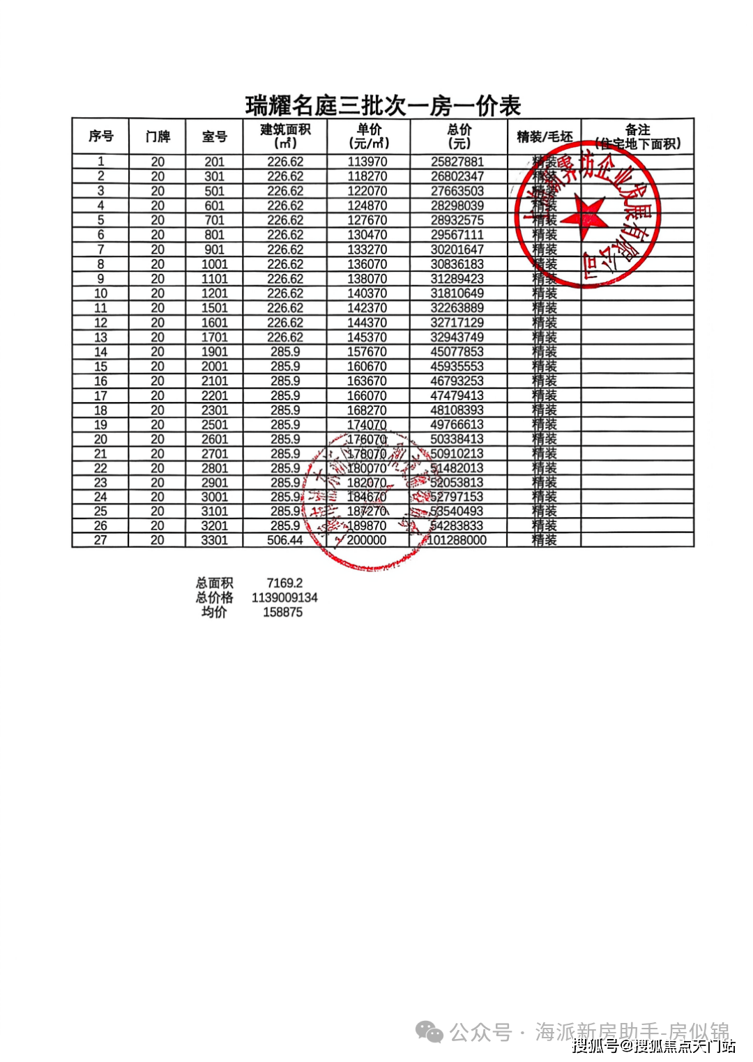 过会均价158875元/m²