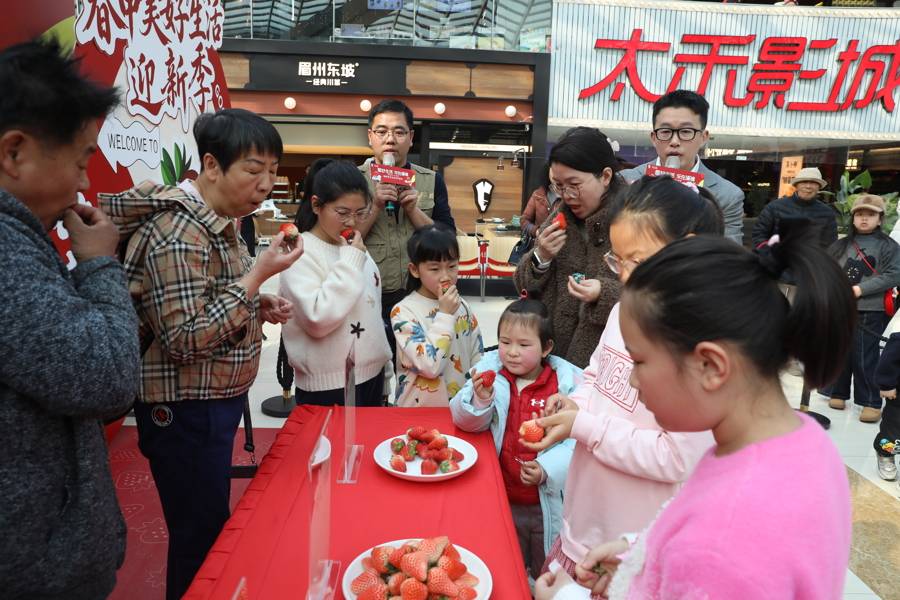 2月7日下午,闵行浦江欢乐颂商场4楼人头攒动,空气中弥漫着草莓的清甜香气。伴随着萌娃电子乐队轻快的演奏声,“来闵过年 马上有福”浦锦“莓”好生活节开幕,也为“春申美好生活迎新季——‘莓’好生活 乐在浦锦”主题活动拉开了序幕。本次活动将持续至2月8日,浦锦街道以特色草莓为媒,串联起文旅商体展多元体验,为市民带来一场别具特色的新春消费盛宴。