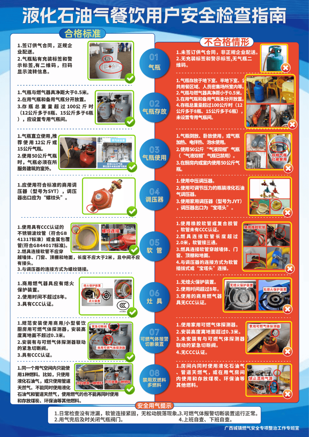 规范使用:后厨燃气器具须合格合规,严禁使用过期、报废设备;