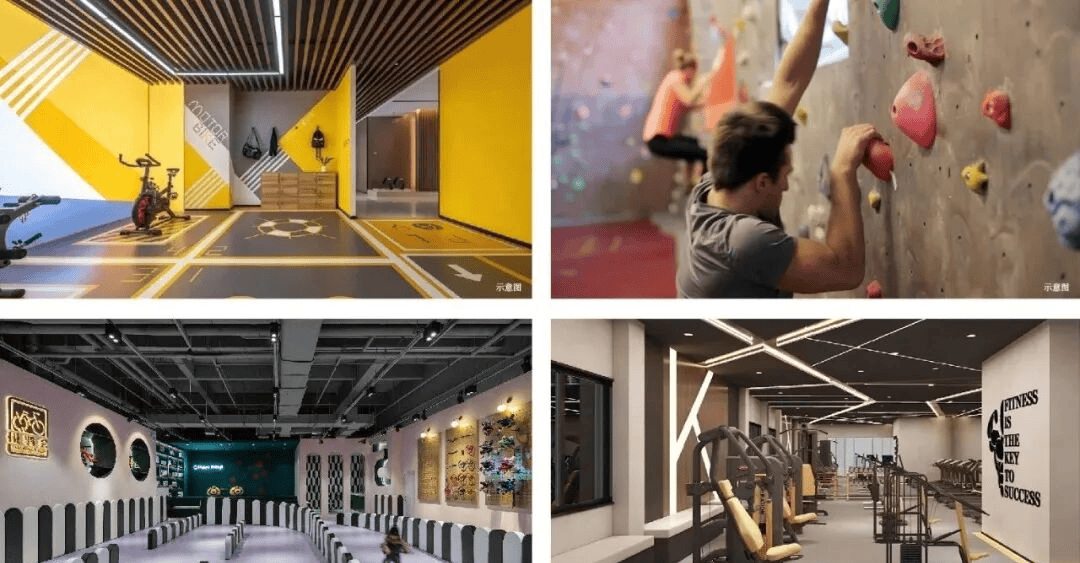 包含运动、轮滑平衡车、健身、游乐、攀岩与跑酷、运动康复/运动服饰装备、餐饮服务;