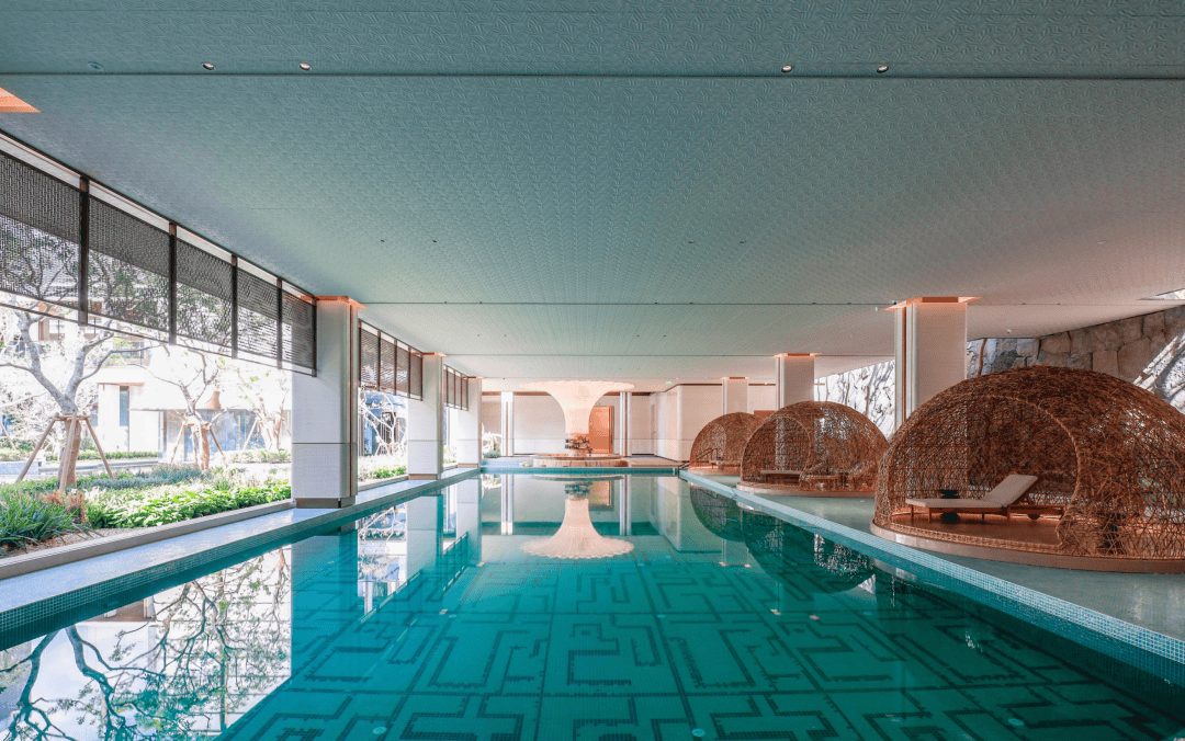 保利仁境深挖内部空间潜力,从“度假式栖居”的精神体验维度,将内部配套规划为悦己、社交、亲子、生活四个方面,串联“从身安到心安”的度假生活脉络。